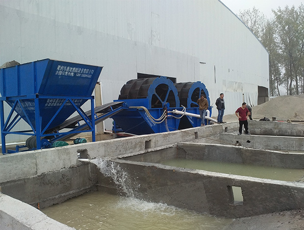 2、裝載機將原料裝入喂料斗內料將原料均勻給予石粉清洗設備。