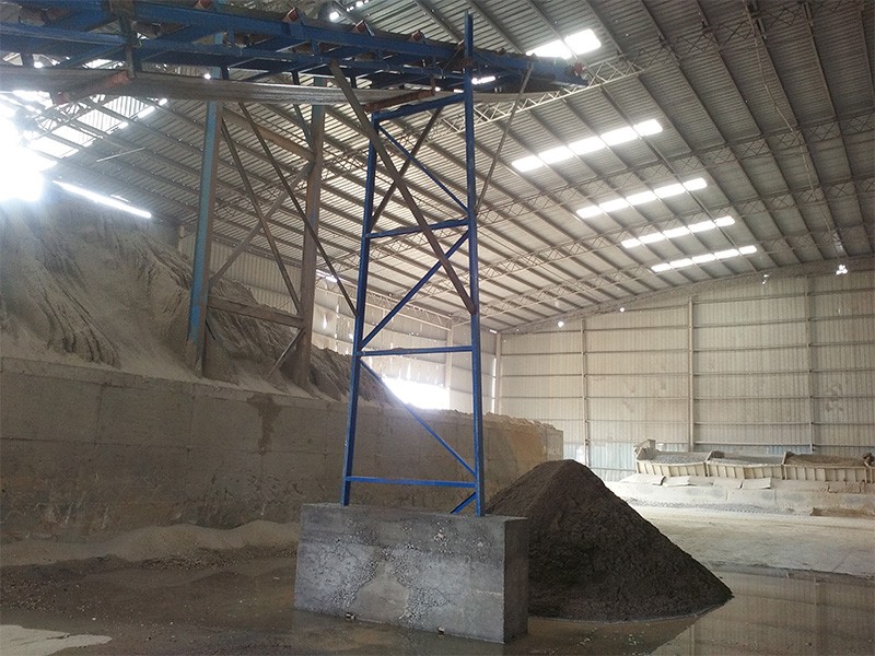 2、裝載機將原料裝入喂料斗內料將原料均勻給予石粉清洗設備。