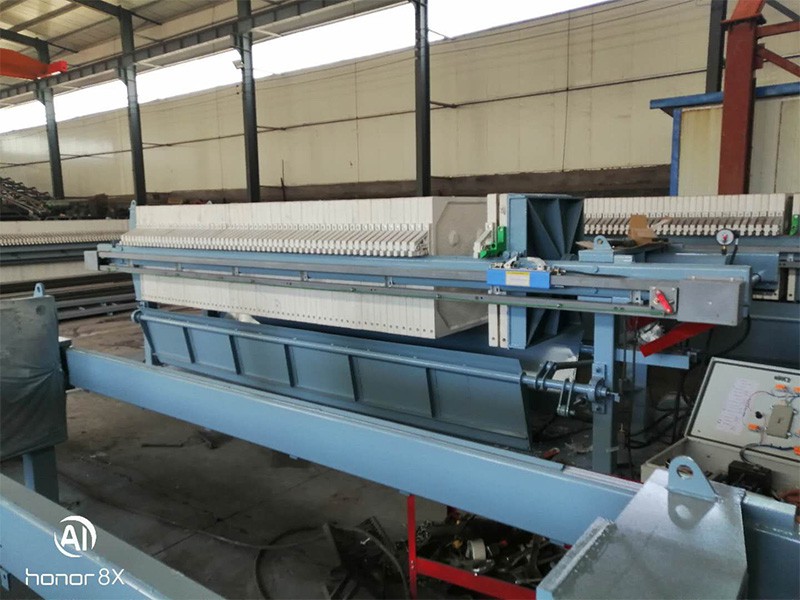 壓濾機(jī)是一種間歇式的加壓過(guò)濾機(jī)設(shè)備,用于各種懸浮液的固液分離,分離效果好,使用方便,適用于大型過(guò)濾行業(yè),要求自動(dòng)化程度高或集中控制,過(guò)濾壓力0.6Mpa左右的過(guò)濾領(lǐng)域。整機(jī)采用機(jī)、電、液一體化設(shè)計(jì)制造,能夠?qū)崿F(xiàn)自動(dòng)壓緊、過(guò)濾、穿流、壓榨、松開(kāi)、拉板等過(guò)程,具有自動(dòng)化程度高,生產(chǎn)能力大,濾餅中含液率低,單位產(chǎn)量高,占地面積小的特點(diǎn)。廣泛用于石油、化工、染料、冶金、制藥、食品、造紙、洗煤及污水處理等各種需要進(jìn)行固液分離的領(lǐng)域。適合的懸浮液的固體顆粒濃度一般為10%以下,操作壓力一般為0.3~1.6兆帕,特殊的可達(dá)3兆帕或更高。過(guò)濾面積可以隨所用的板框數(shù)目增減。板框通常為正方形,濾框的內(nèi)邊長(zhǎng)為 200~2000毫米,框厚為16~80毫米,過(guò)濾面積為1~1200㎡。板與框用手動(dòng)螺旋、電動(dòng)螺旋和液壓等方式壓緊。板和框用木材、鑄鐵、鑄鋼、不銹鋼、聚丙烯和橡膠等材料制造。